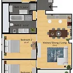 6 rum, som erbjuds i denna lägenhet, ståtar med ett komplett kök samt sitthörna, te/kaffebryggare och luftkonditionering. Boendet har också 2 badrum. Ett badrum är utrustat med duschkabin, dusch och bidé.